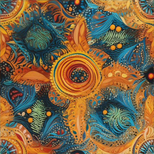 A captivating painting in the realm of patterns and mandalas, with vibrant colors and intricate designs that radiate outward, evoking a sense of energy and spiritual significance, the artwork invites the viewer to explore the depth and complexity of the mandala's symbolism, Artwork, acrylic on canvas with meticulous attention to intricate details and mandala and floral pattern motifs, --style raw --tile -