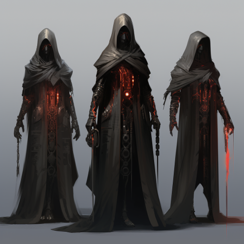 a digital avatar of an abstract figure wearing a hooded cloak that seems to merge with the star-studded night sky, their face an empty void. Overlaid is an outline of Saturn’s rings arching behind them, a faint golden glow subtly illuminating their form. The effect should be almost haunting, as if looking into a humanoid void with faint stars glimmering in its depths. --style raw