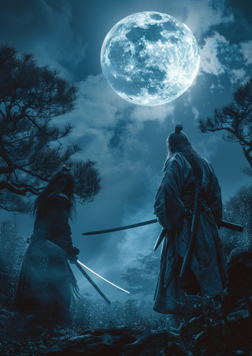 Grimdark aetherpunk medieval omnipotent enhanced komuso champion, full body, anime style, komuso bodysuit, enhanced equipment, high fantasy, digital art, masterpiece painting, ultra detailed, ultra high definition, 8K resolution, 3D shading, superior quality, cover illustration, complex design, luminous highlights, rich colours, hyperrealistic, meticulously hyper detailed, high contrast, artstation --niji 5