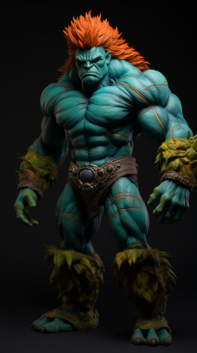 (Masterpiece) super hero full body inspired in blanka street fighter, without wings, no wings, black and teal ,style of Hot Toys action figure, cinematic photograph, full-body view, canon 850, --ar 9:16