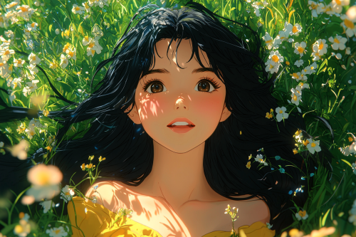 anime, hand-drawn and cell animation techniques, a wide shot of a girl with long black hair day dreaming looking up at the sky while laying under a beautiful tree, natural design, beautifully rendered and expressive rich colors, vibrant pastel colors, sharp attention to detail, realism and a strong sense of nostalgia and warmth, sharp attention to small details and textures, fantastical creatures, settings, depth and emotions emphasized and accentuated by lighting and shading, extremely high quality, incredibly high finite definition, high resolution, hand-drawn and cel animation techniques, anime --ar 3:2 --stylize 1000 --q 2