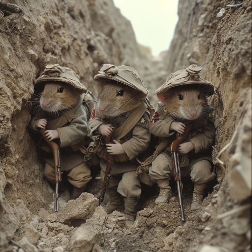 upright cockroach-human body guards, machine guns, deep underground bunker, green algae slick walls, single overhead bulb, 70s water color, western, scifi, cinematic, --ar 16:9