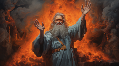 The Antichrist, jewish culture themes, in the style of hyper-realistic oil, orange and aquamarine, history painting, smokey background --ar 16:9