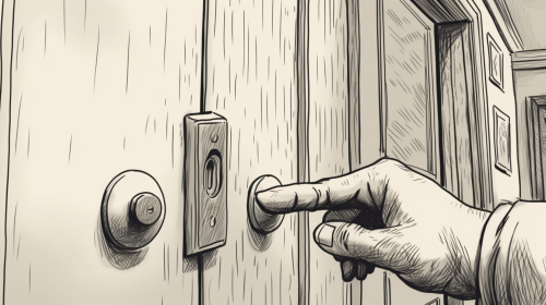Storyboard, line drawing style, extreme closeup, man ringing doorbell, finger on button --ar 16:9 --v 5.0