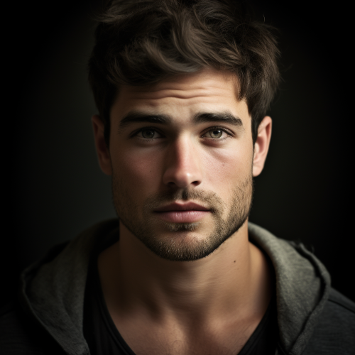 a handsome 26 year old man photograph taken from the front at 90 degree angles, even lighting from both sides, soft contrast:: soft contrast::0.9 --style raw