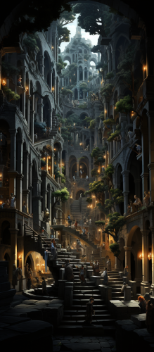 incredibly complex and intricate pencil drawing of ancient library of alexandria, --ar 7:16 --s 750