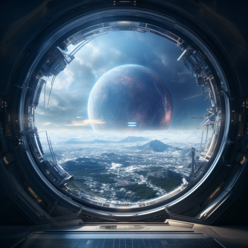 A giant intertemporal portal orbiting near Earth, where spaceships pass into an unknown universe, seen from a window where you can feel the drama of disappearance. Ultra-realistic, 4K, cinematic. --v 5.2