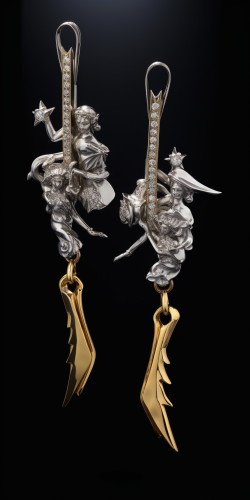 hyper realistic Apollo and Artemis rare silver jewel diamond studded earring metallic acid wash young Cupid beauty queen supermodel cover star Hawaiian Thai blasian island girl angel holding katana gold encrusted honorary handcrafted medieval blacksmith master blade sword glowing victorian old English antique masterpiece cinematic, 35mm lens, f/ 1. 8, accent lighting, global illumination --ar 4:2 --s 1