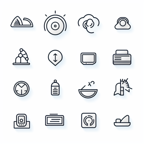 Prompt: Outline icon set of communication channels, a set of 10, an email icon, a phone call icon, a instant messaging icon, a video conferencing icon, a industry market plattform icon, a trade show icon, a conference icon, a newsletter icon, a peer to per icon black line, minimal, white background, ui, ux, design, app, clean fresh design