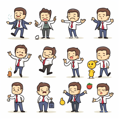A cute cartoon,an office worker with a personality,emoji pack, a individual ui design app icon ui interface emoticons, multiple poses and expressions, exaggerated expressions and body movements, hand drawn line style, white background --v 5.1 --s 750