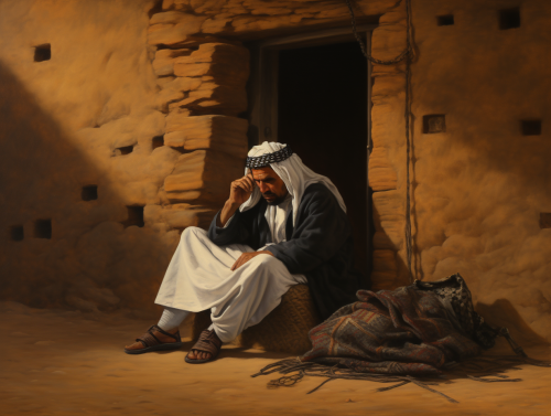Raymond Pettibon's art is known for its stark black ink drawings often intertwined with text providing a narrative or commentary. This imagined artwork adopts his signature style while delving into the complex and ongoing Arab-Israeli conflict. Picture a large canvas, approximately 6 feet in height and 4 feet in width. The dominant feature is a colossal wave, drawn in Pettibon's typical wavy line style, its crest threatening to crash down. This wave is not just a physical entity, but a metaphorical representation of the tumultuous Arab-Israeli relations. The wave is illustrated with a fluid yet erratic line, embodying the unpredictable nature of the political tension. The crest of the wave morphs into the shapes of distorted faces representing the leaders and common people from both sides of the conflict, their expressions displaying a mix of fear, anger, and sorrow. Now, visualize the background, which is divided into two contrasting halves. The left side represents Israel, with iconography like the Star of David, a kippah, and images of historical figures like Golda Meir and Yitzhak Rabin. The right side represents the Arab nations with symbols like the crescent moon and star, a keffiyeh, and images of historical figures like Yasser Arafat and King Hussein of Jordan. The division in the background accentuates the dichotomy between the two factions while the menacing wave symbolizes the overhanging threat of conflict that affects both sides. In the foreground, beneath the wave, lies a barren land, void of life. This could symbolize the loss and devastation that has occurred over the decades due to the ongoing conflict. In the bottom right corner, in Pettibon’s characteristic textual annotation, the phrase, “The ceaseless tide of aspirations and despair,” is [...]