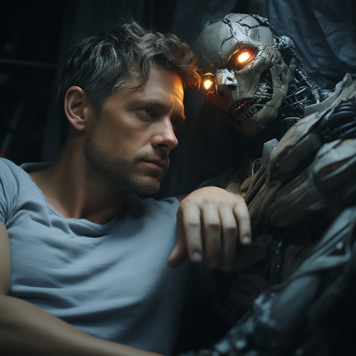 Analog Portrait of Young Arab Woman with Male Robot