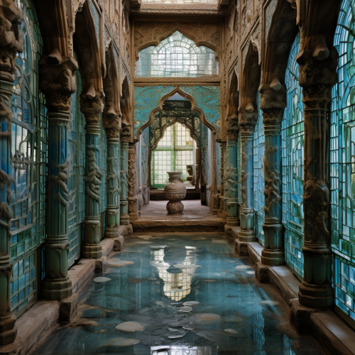 beachside motel::2 architectural photography::2 Collaboration between architect Jean Nouvel and artist Claude Monet::2 Nouvel's expertise in manipulating light combines with Monet's passion for capturing it; expansive windows, skylights, and light wells infuse interiors with a mesmerizing interplay of natural light. --ar 3:1 --v 5.2