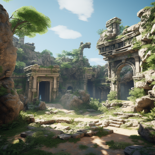 environment of ancient ruins from model 3D models, rendering on unreal engine 5, realism