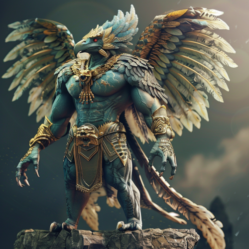 Garuda: This giant bird-like creature, the king of all birds, could be a magnificent aerial superhero. Imagine a giant humanoid with wings, possessing incredible speed and razor-sharp talons. Garuda could patrol the skies, his keen eyesight allowing him to spot threats from afar. as a cartoon super hero character living in modren age, 3d model with ultra realistic cinematic lighting and best DOP photography