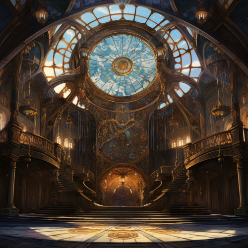 This room contains a large sundial in its center, and the roof has a dome that is designed to be retracted to allow sunlight in, fantasy art, drawing style