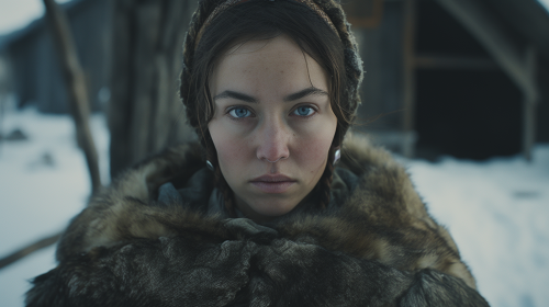 Generate a hyper-realistic photograph of an empress made of ice and snow, her presence as majestic as the auroras that dance in the sky above her frozen kingdom. Her skin sparkles like freshly fallen snow under the aurora borealis, and her hair is a cascade of ice crystals that reflect the ethereal lights. She wears a crown of frost and a cloak of blizzard winds, her beauty untouchable yet inviting, a vision of winter's serene and untamed elegance. In the style of documentary photography --ar 16:9 --style raw --v 6.0 --s 500