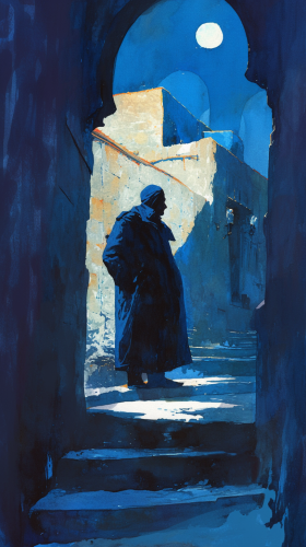 cartoonish goofy looking alien on a city street in a trenchcoat shrugging his shoulders. Suspicious humans on either side point at him.