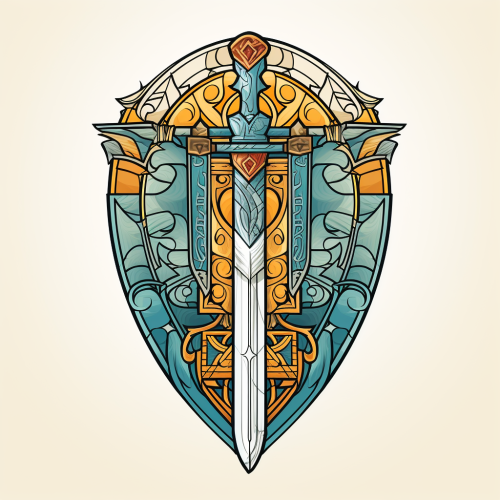 Art Deco style, female version of the Jack from a deck of cards, elegant and geometric design. She holds a stylized sword in one hand and a decorated shield in the other. Her attire features intricate patterns typical of Art Deco, with bold lines and shapes. Her hair is styled in a 1920s fashion, framing her face with sophistication and confidence. Colors should include gold, black, silver, with hints of blue and red. The overall composition should exude the glamour and symmetry of the Art Deco era.
