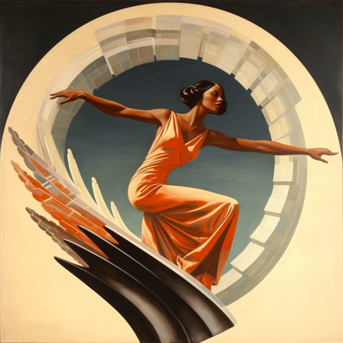 1930s art deco style (like the winged angels on hoover dam) art of a woman, master of sports