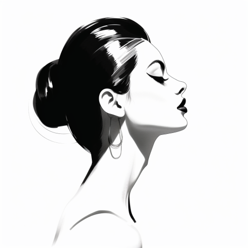 black and white side profile, drawing, minimalist style, line art, art deco