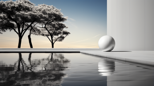 Christmas tree. Christmas spirit. Abstract art deco. Modern minimalist swimming pool. Clean lines. Christmas. Black and white subtle elegant color splash. Stylish. High-end. Important. Mysterious. Shot with a Pentax. K-3 III Monochrome. Extreme low angle shot. Shooting straight up. --ar 16:9 --q 0.5 --s 750