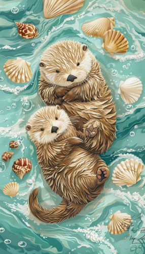 Enchanted Ocean, Sea Otters and Fairytale Elements, Fantasy Art Style, 3D Embroidered pattern --ar 4:7 --v 6.0