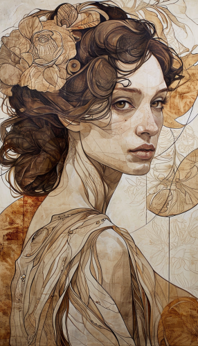 In the Art Nouveau style, behold a portrait capturing the essence of a woman from a futuristic realm. Her countenance is a symphony of organic lines and flowing forms, mirroring the elegance of Art Nouveau's curvilinear aesthetics. With meticulous attention to detail, the portrait unveils her expressive gaze, evoking an otherworldly allure within a tapestry of intricate floral motifs and sinuous designs. The fusion of futuristic elements and the graceful, nature-inspired Art Nouveau style paints her as an ethereal being, a vision of timeless beauty. This portrait seamlessly weaves the futurism of her origins with the captivating allure of Art Nouveau, crafting a visual ode to the harmonious coalescence of past and future. --ar 4:7 --v 6.0