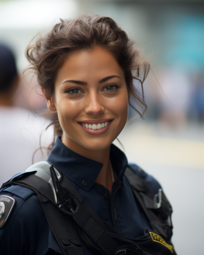 australia police woman smiling, friendly, close-up, photo realistic, leica summilux 35mm f1.4, shallow dof, --ar 4:5 --v 5.2