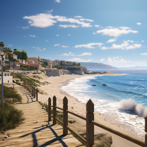external view of a series of horizontal low rise hotel buidlings, beach front, boutique, all white, in los cabos mexico, modern minimalistic, photoreal --ar 16:9