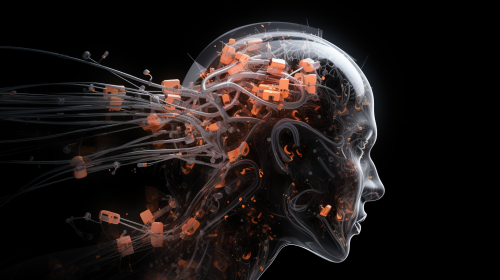 abstract photo that symbolises training artificial intelligence, black background, --ar 16:9