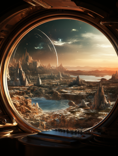 distant planet from the space ship window and seeing in the radar, --ar 3:4 --s 250