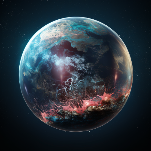 view from outer space of an exo planet globe with possible extraterrestrial life and red oceans, detailed, photography realistic
