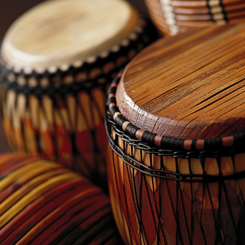 Ein detailliertes Bild eines Sample Packs für Percussion Sounds, ohne Verpackung. Die Instrumente sind in einem modernen, stilisierten Design dargestellt, mit lebendigen Farben und scharfen Linien. Der Hintergrund ist einfarbig und schlicht, um die Details der Instrumente hervorzuheben. HD-Qualität, klare und lebendige Darstellung --ar 1:1 --v 6.0 --style raw