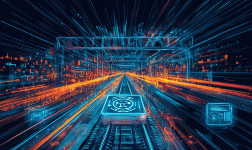 In the style of John Singer Sargent and Craig Mullins, an artistic illustration on IoT communication protocols, technological lines, techy, --aspect 5:3 --stylize 200 --no people