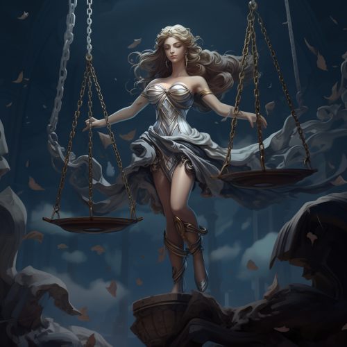 Justitia Roman goddess of justice, 2D, league of legends style --v 5.2