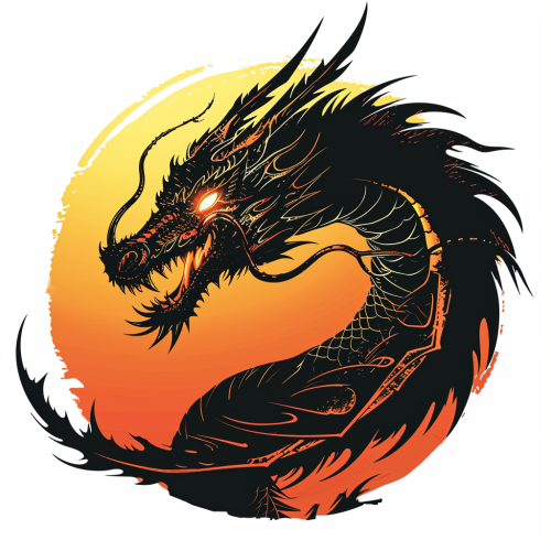 Dragon illustration with black and white color outline, no background, suitable for any element, template, tattoo, decoration, screen printing, backdrop