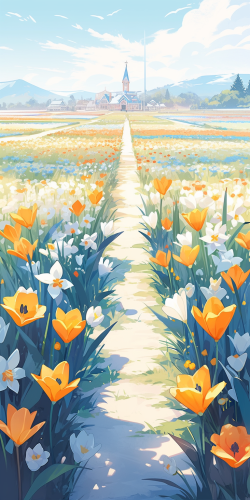 beautiful flowerfields in Lisse, The Netherlands on a sunny Spring day, ultra realistic --ar 14:11 --v 6.0