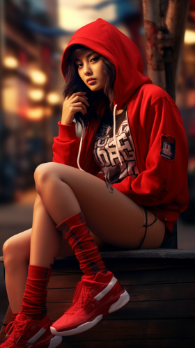 a Korean female model wearing Prada style Cashmere Sweater ;--v 5.2 ; --ar 9:16