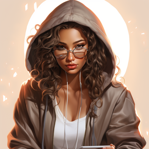 **clipart,a beautiful brown girl with glasses, wearing a hoodie the style of social media art, realistic figures,dima dmirtiev, clock punk, comic cartoon,gerard sekoto, litras y figuras --s 250