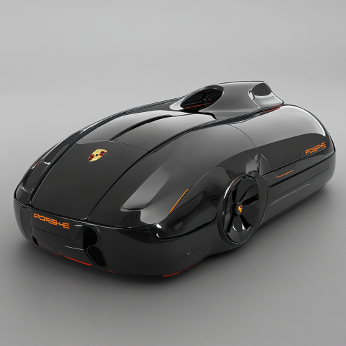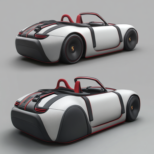 make a Porsche bag which is futuristic and minimal and has fantastic features. the image should be realistic and with a model. the bag should be minimal but fancy. porsche logo should be Cleary visible on that. It should look like a real bag and something which can be made and used in real life.