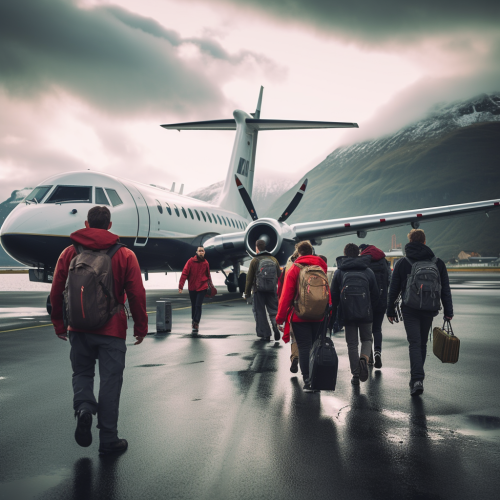 Floating on the cliffs of Norway at night. The scene captures a bird's-eye view of mist clouds hovering above the sharp rock formations of Pulpit. In the foreground, a man is climbing up a cliff natural lighting, in elusive, professional colour grading 8K HD --style raw --ar 9:16