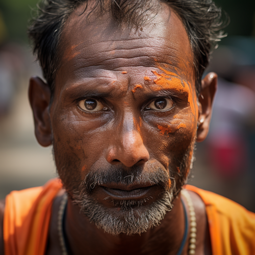 Generate high-resolution, close-up images of Indian marathon runners, capturing their determined expressions, sweat-soaked faces, and focused eyes during the race. Showcase the grit, perseverance, and unwavering spirit of these athletes as they push forward, highlighting their dedication to the marathon journey.