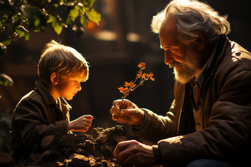 grandfather and grandchild planting a tree in the garden --ar 3:2 --upbeta --s 750
