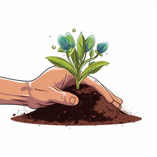 Image of a Young Child Planting a Hemp Seedling: A touching photo of a child, possibly around 7-10 years old, carefully planting a hemp seedling in a community garden. The background should be a vibrant, lush setting that symbolizes growth, renewal, and the investment in future generations. The child should have a look of focus and hope, symbolizing the positive impact of sustainable practices. --ar 16:19