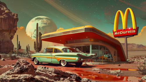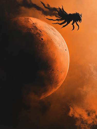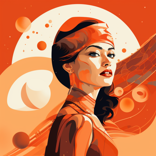 generate an illustration on which there is a woman who identifies the qualities of the planet mars