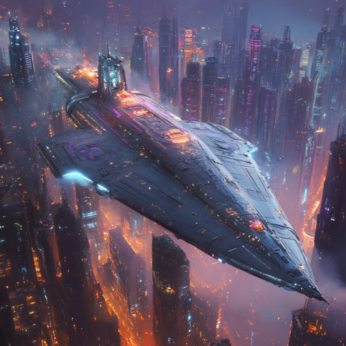 a Roman Empire-inspired spaceship, a sci-fi warship that has been repurposed to serve as a giant city that orbits the sun, Its exterior has a somewhat elongated, elliptical shape, with a central body tapering towards the ends, greco-roman architecture blending with futuristic neon colors
