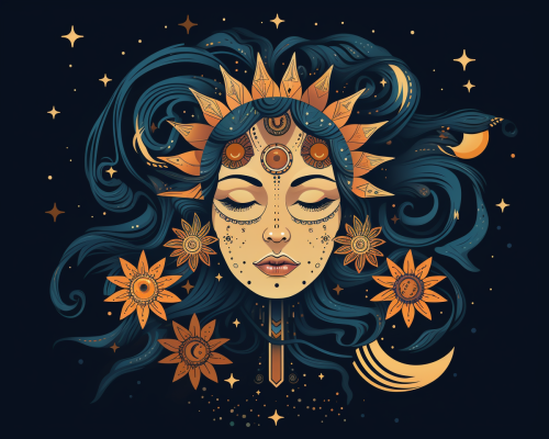 Astral tattoo with big moon illustration