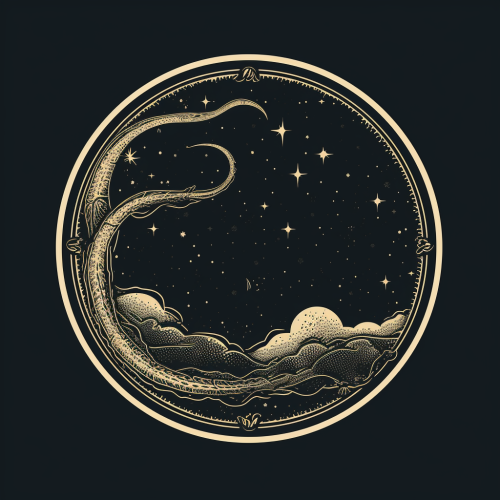 blank printable label with black and gold fine line tattoo-style snake moon surround, occult, minimalist