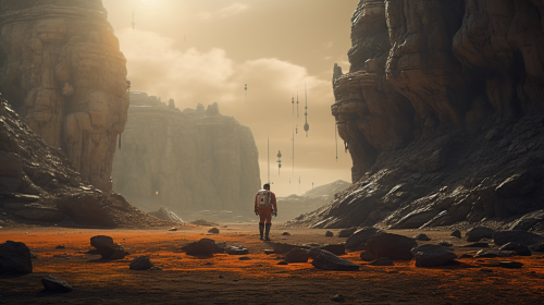 astronaut walking on a haunted planet, erie lighting, --ar 16:9 --v 5.2